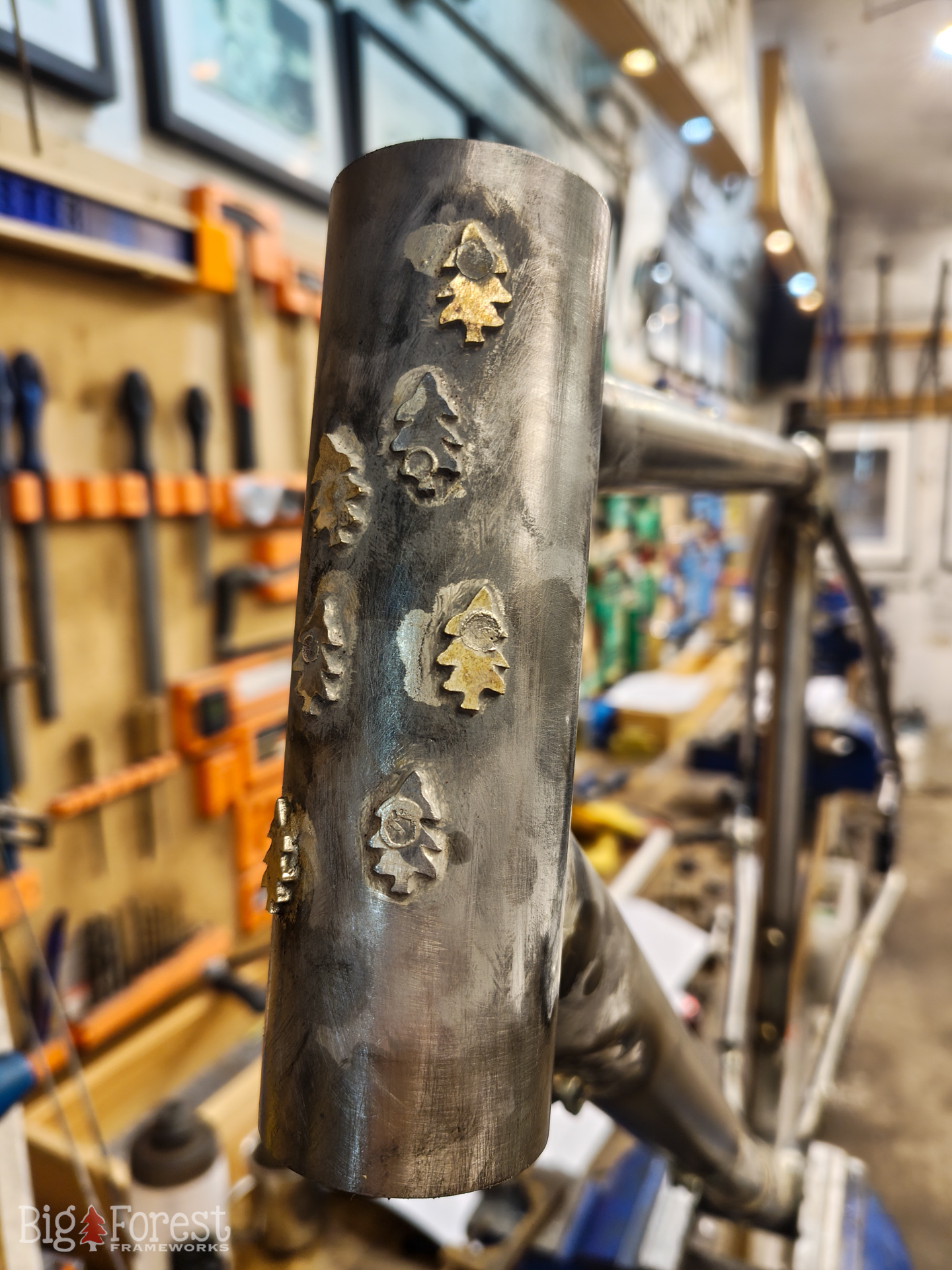 „Als Nächstes möchte ich noch einen kleinen Singletrail zwischen den Bäumen auf das Steuerrohr malen.“